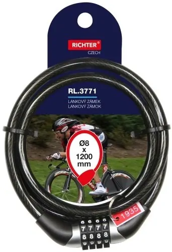 Černý kódový lankový zámek RICHTER CZECH RL.3771.8x1200.CRN 8 x 1200 mm