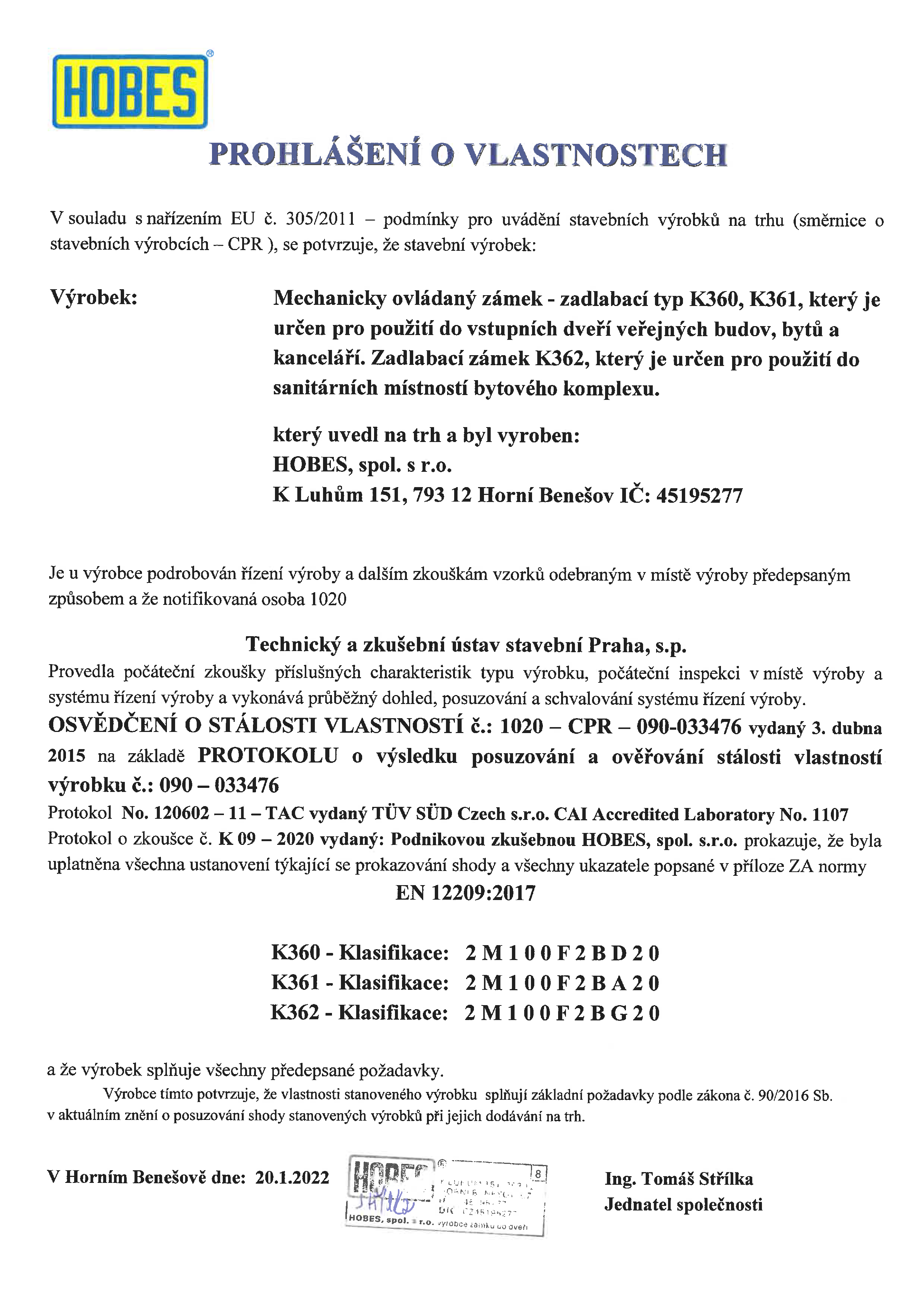 Pravolevý zadlabací zámek HOBES 01-15 C pro tvarový klíč 90/60 bez převodu