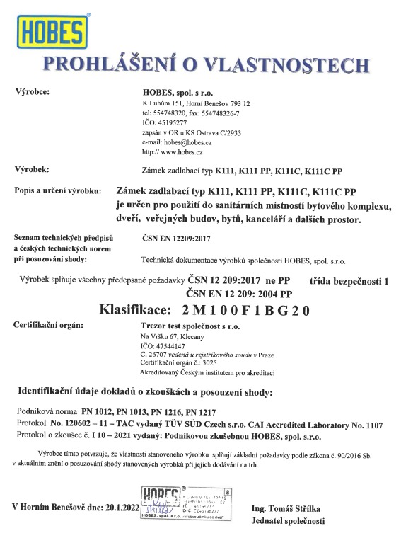 Jednozápadový zadlabací zámek HOBES K 111 je vyrobený z pozinkované oceli a slouží pro instalaci na interiérové dveře. Obsahuje spodní ořech (čtyřhran) a otvory pro dělené štíty. Tento typ zadlabacího zámku je dostupný v pravolevém provedení.