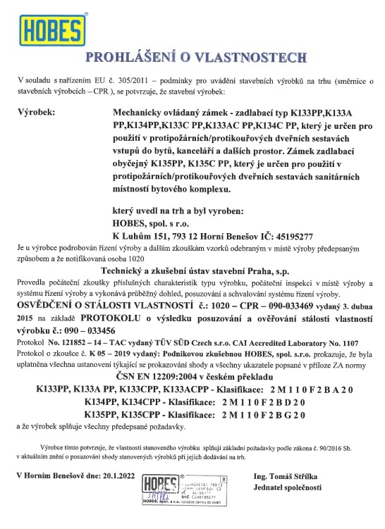 Dvouzápadový zadlabací zámek HOBES K 133 je vyrobený z pozinkované oceli a slouží pro instalaci na vchodové dveře. Obsahuje otvor pro cylindrickou vložku, otvory pro dělené štíty a také převod. Tento typ zadlabacího zámku je dostupný v pravolevém provedení.