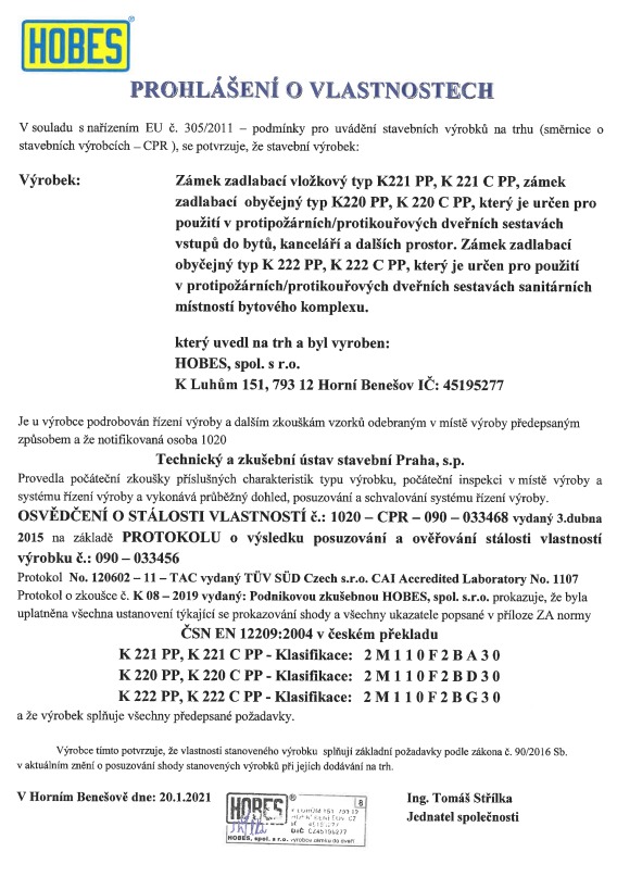 Zadlabací zámek HOBES K 221 vložkový 72/77 pravýSkladem311 Kč/ ks257 Kč bez DPH